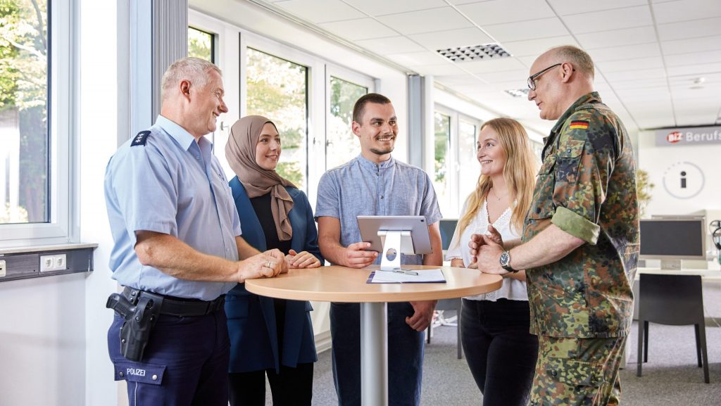Vor Ort stellen sich unter anderem Polizei, Bundeswehr, Zoll und Feuerwehr vor. Informieren Sie sich über Ausbildungs- und Karrieremöglichkeiten in sicherheitsrelevanten Berufen.