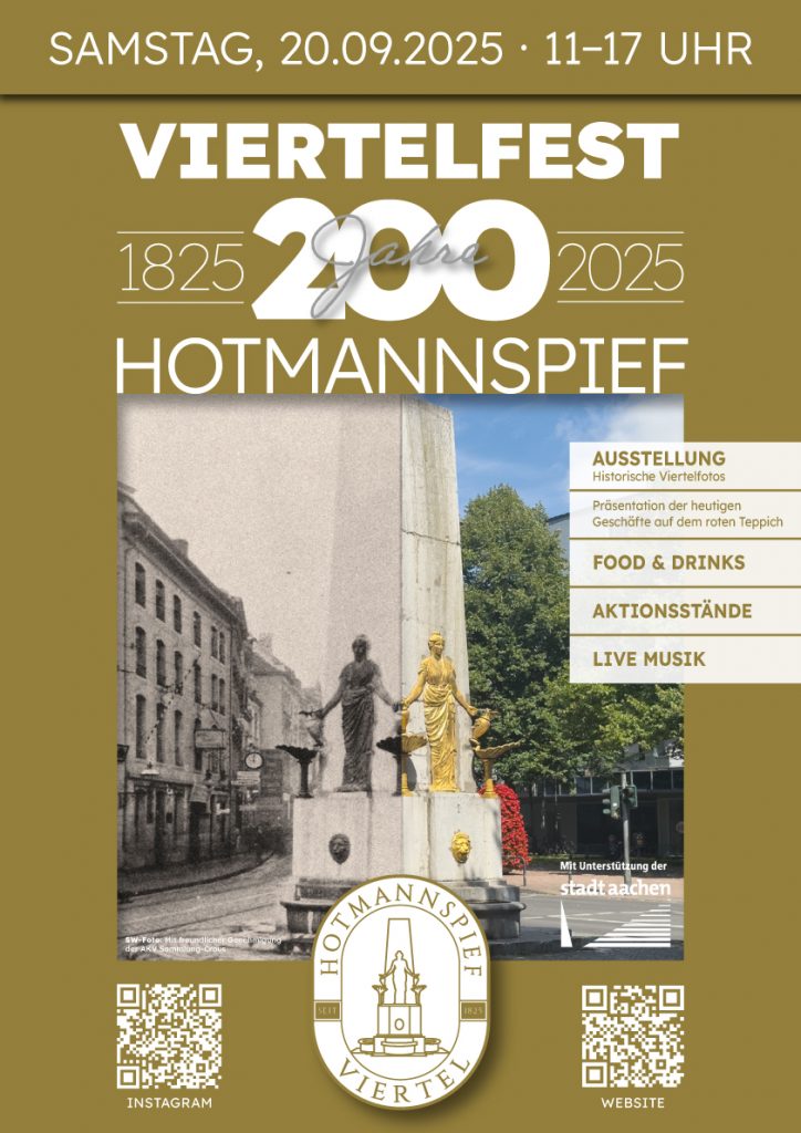 Viel geändert hat sich nicht: Schon vor 200 Jahren war der Brunnen an der Hotmannspief der lebendige Treffpunkt des Viertels. Hier machten die Hotmänner mit ihren Pferdefuhrwerken Halt, tränkten ihre Tiere und tauschten vor allem Neuigkeiten aus. So entstand der Name rund um das Herzstück, den Brunnen, der 1825 seine heutige Gestalt erhielt – entworfen vom Stadtbaumeister Adam Franz Leydel. Am Samstag, 20. September, feiert die Hotmanns- pief-IG das 200. Jubiläum mit einer Schau, die Geschichte und Gegenwart verbindet. Der 2022 gegründete Zusammenschluss von Gewerbetreibenden stellt beim so besonderen Viertelfest 2025 die Historie ins Schaufenster – buchstäblich: Überlieferte Fotos erlauben Blicke in die Vergangenheit. Das Programm dagegen ist up to date: Um 12.30 und 14.30 Uhr präsentieren sich alle Geschäfte auf dem roten Teppich, Food & Drinks verlocken ebenso wie Aktionsstände und Spielmöglichkeiten für Kids. Die Marching-Kapelle Dad’s Army Dixieland Jazz Band sorgt derweil für Stimmung auf Straßen und Plätzen. Die Hotmannspief ist und bleibt eben der Hotspot für alle: vom Hufschlag der Hotmänner bis zum Takt eines aktiven Stadtviertels.