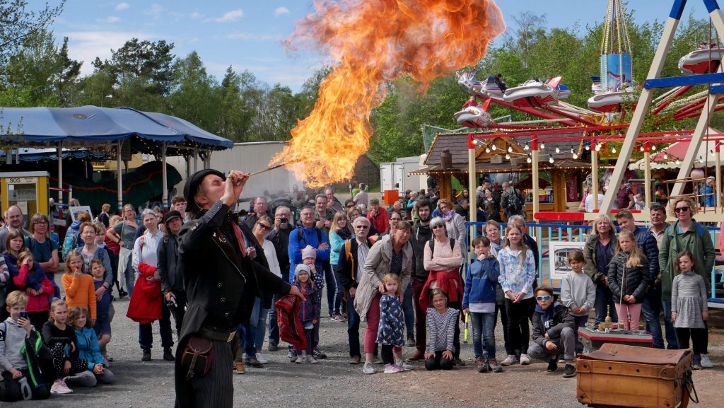 Zu den unzähligen Angeboten, darunter viele handverlesene Wanderhändler- und Handwerkerstände, zählt auch ein buntes Artistikprogramm von Weltklasse. Für den diesjährigen „Jahrmarkt anno dazumal“ konnten wieder hochkarätige Künstler verpflichtet werden. Natürlich darf auch Feuerspucker Gilbert nicht fehlen.