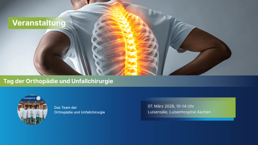 Die Klinik für Orthopädie und Unfallchirurgie lädt Sie herzlich zum Tag der Orthopädie und Unfallchirurgie ein. An diesem Informationstag erhalten Sie spannende Einblicke in moderne Behandlungsmethoden von Gelenkerkrankungen, Knochenverletzungen und orthopädischen Beschwerden. Unser Team aus Experten im Bereich Gelenke und Wirbelsäule stellt innovative Therapieansätze vor – von konservativen Maßnahmen bis hin zu operativen Eingriffen. Die Veranstaltung richtet sich an Patientinnen und Patienten, Fachpublikum sowie alle Interessierte. Nutzen Sie die Gelegenheit, sich direkt mit den Spezialistinnen und Spezialisten auszutauschen und individuelle Fragen zu stellen. Gerne können Sie sich an Modellen und Plastiken selbst ein Bild der Techniken und Themen machen, die Sie im Luisenhospital erwarten.