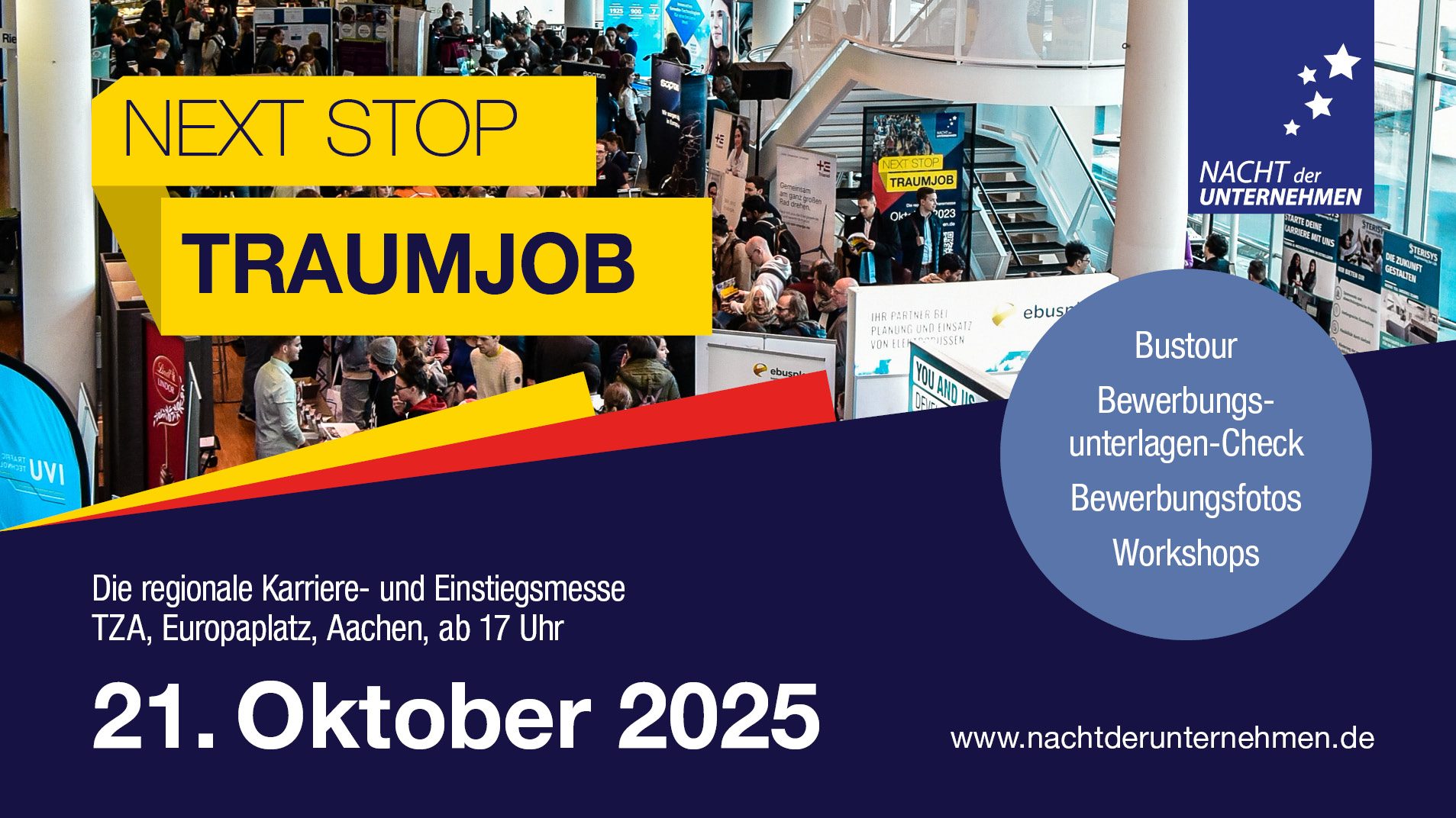 Die Nacht der Unternehmen kehrt am Dienstag, 21. Oktober, mit ihrer 21. Ausgabe ins Technologiezentrum Aachen (TZA) am Europaplatz zurück. Seit ihrer Premiere im Jahr 2008 hat sich die Karrieremesse als bewährtes Erfolgsformat etabliert, das Jahr für Jahr Arbeitgeber und Talente direkt zusammenbringt. Ziel ist es, die Fachkräfte von morgen in der Region zu halten […]