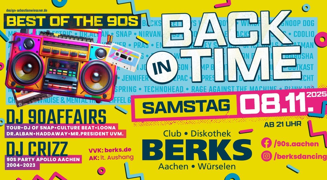 Die Originale der 90er - all night long. BACK IN TIME sind wieder da: mit DJ 90Affairs (Support-DJ of Snap!, Culture Beat, Haddaway, Dr. Alban, Loona & more) & DJ Crizz (90s Party Apollo Aachen 2004-2023). Eurodance, Boygroups, HipHop, Rave, One-Hit-Wonder... musikalisch sind die 90er unverwechselbar und bringen immer noch jede Tanzfläche zum Kochen! Wir […]
