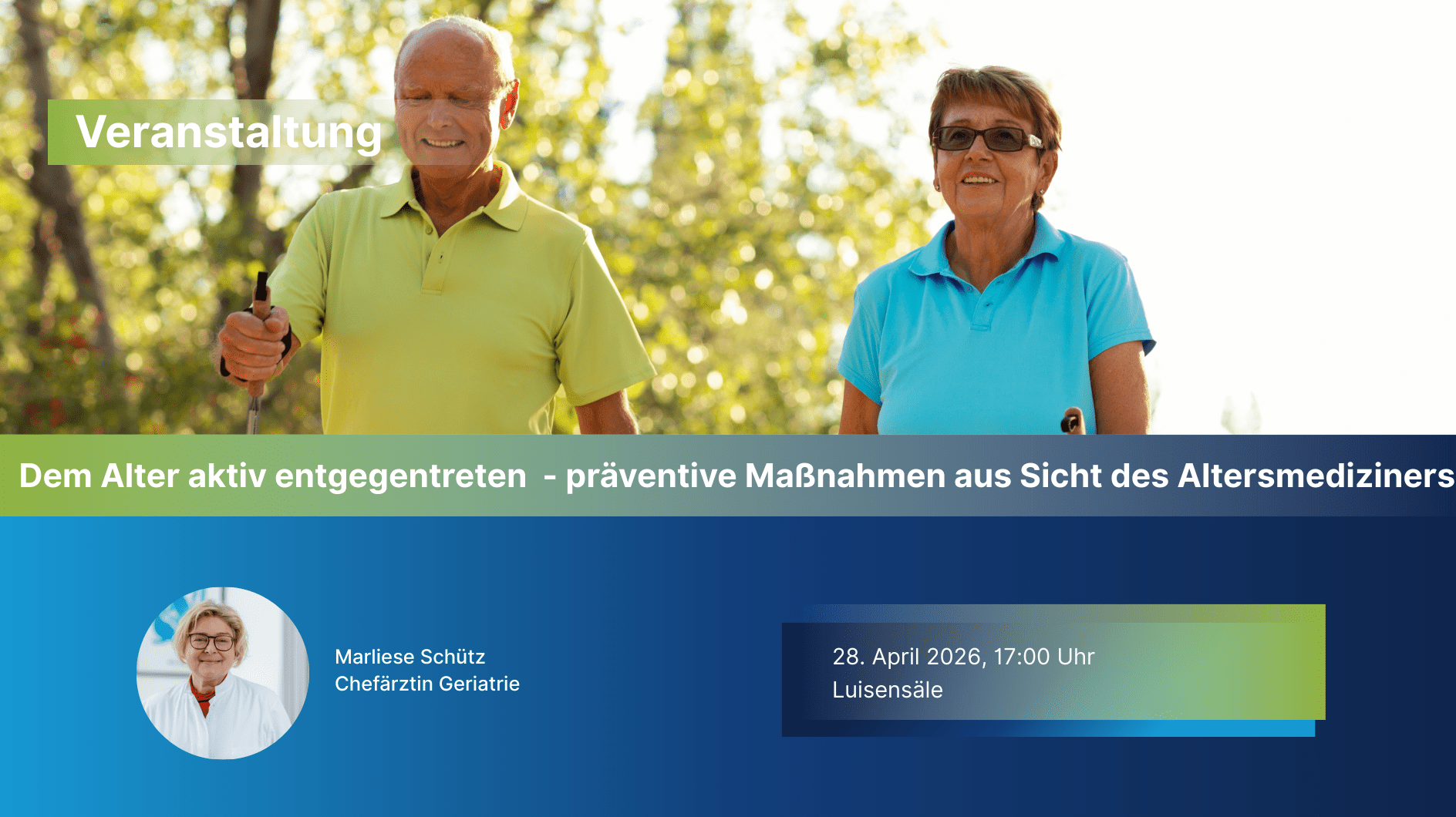 Fit und selbstbestimmt älter werden - das geht! In diesem Vortrag zeigt die Chefärztin der geriatrischen Klinik, wie Du aktiv etwas für Deine Gesundheit tun kannst: Bewegung, Ernährung, mentale Stärke und medizinische Vorsorge - was hilft wirklich, um möglichst lange mobil und unabhängig zu bleiben? Komm vorbei und hol Dir praktische Tipps direkt vom Altersmediziner […]